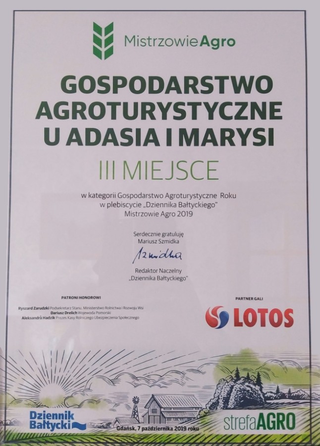 Spędziłem tu super tydzień, wszystko nam się podobało, było pyszne jedzenie, świeże, domowe, możliwość korzystania z kajaka, łodzi, nauczyłem się nawet doić krowę, przemili, uczynni gospodarze gotowi spełnić każde kulinarne życzenie. Można spokojnie odpocząć, można korzystać z grilla, można skosztować prawdziwej kaszubskiej kuchni. Szczególnie dzieci czują się tu wyjątkowo dobrze. Polecam to miejsce każdej rodzinie, szczególnie dzieciom, które na co dzień nie mają kontaktu z prawdziwą wsią, wrócą zachwycone tak samo jak my. Pozdrawiamy Panią Marysię, pana Adama i panią Natalię, do zobaczenia